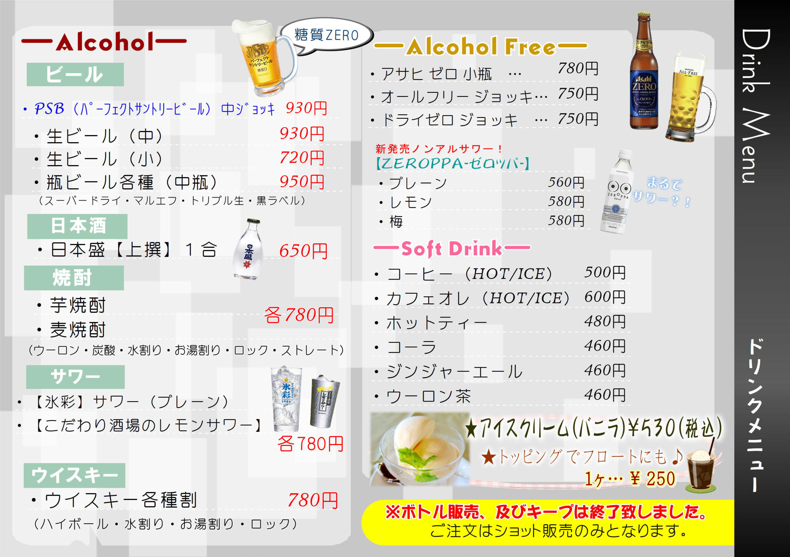 新型コロナウイルス感染状況により内容を変更させていただく場合がございますので予めご了承ください。 ブレックファストメニュー ランチメニュー ドリンクメニュー おつまみメニュー サービスデーメニュー パーティーメニュー ちょい飲みセットメニュー ブレックファストメニュー ちょい飲みセットメニュー ランチメニュー ドリンクメニュー おつまみメニュー サービスデー ランチメニュー パーティーメニュー